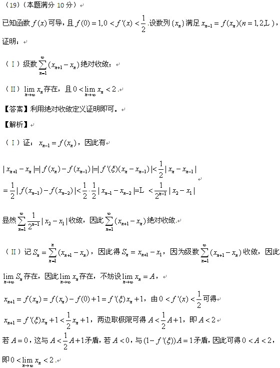 【点评】本题考查函数的连续性与可导性。此知识点在冲刺阶段的数学冲刺串讲班中第一部分高等数学有重点讲解,在强化阶段考研数学强化班高等数学第二章导数与微分和强化阶段数学重点题型精讲班也均有涉及。