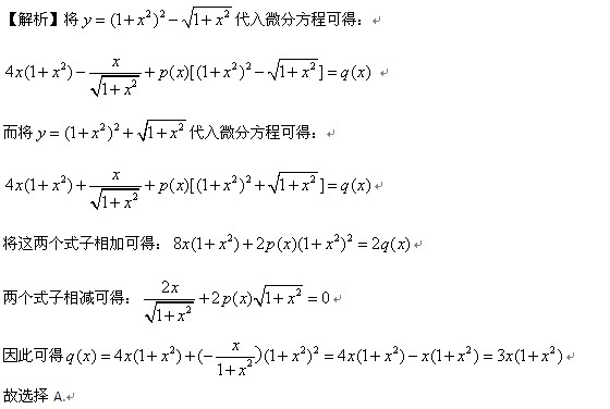【点评】本题考查微分方程。此知识点在冲刺阶段的数学冲刺串讲班中第一部分高等数学有重点讲解,在强化阶段考研数学强化班高等数学第五章微分方程和强化阶段数学重点题型精讲班也均有涉及。