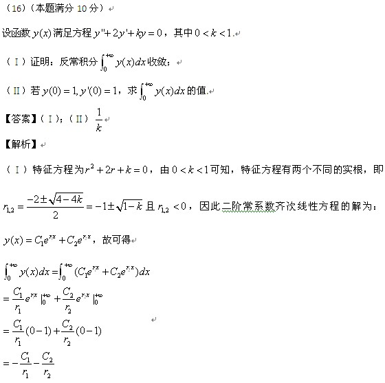 2016研究生考试数学一答案解析