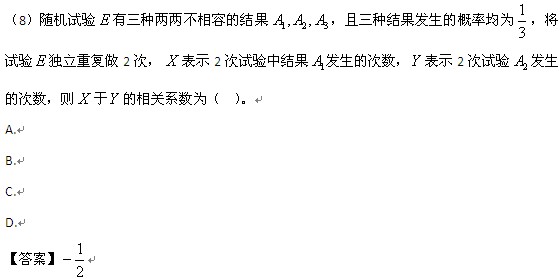 【点评】本题考查相关系数。此数理统计冲刺阶段的数学冲刺串讲班中第三部分概率论与数理统计有重点讲解,在强化阶段考研数学强化班概率论与数理统计第四章随机变量的数字特征和强化阶段数学重点题型精讲班也均有涉及。
